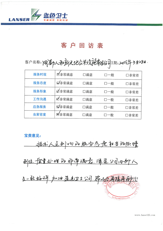 通過合作,對四害的消殺控制的很好,符合項目品質(zhì)要求!